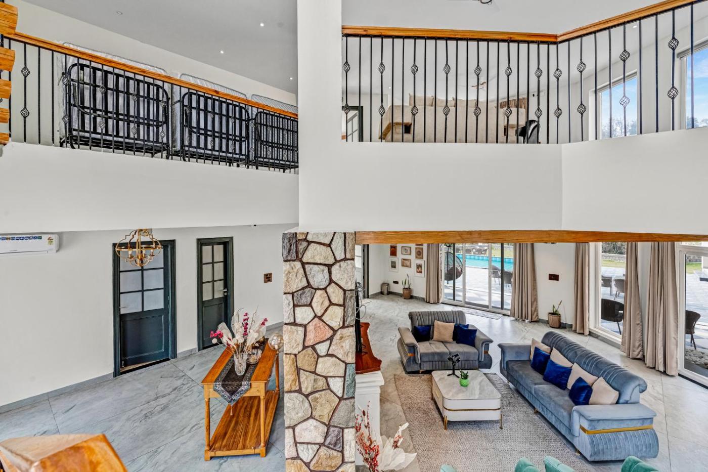 Featuring air-conditioned accommodation with a pool with a view, SaffronStays Sukh Saklana Haveli Suites - 2BR luxury villa with private pool, lush valley views & North Indian cuisine near Dehradun Airport isin Rishīkesh. Boasting a shared kitchen, this property also provides guests with an outdoor fireplace. There is a sun terrace and guests can make use of free WiFi and free private parking.